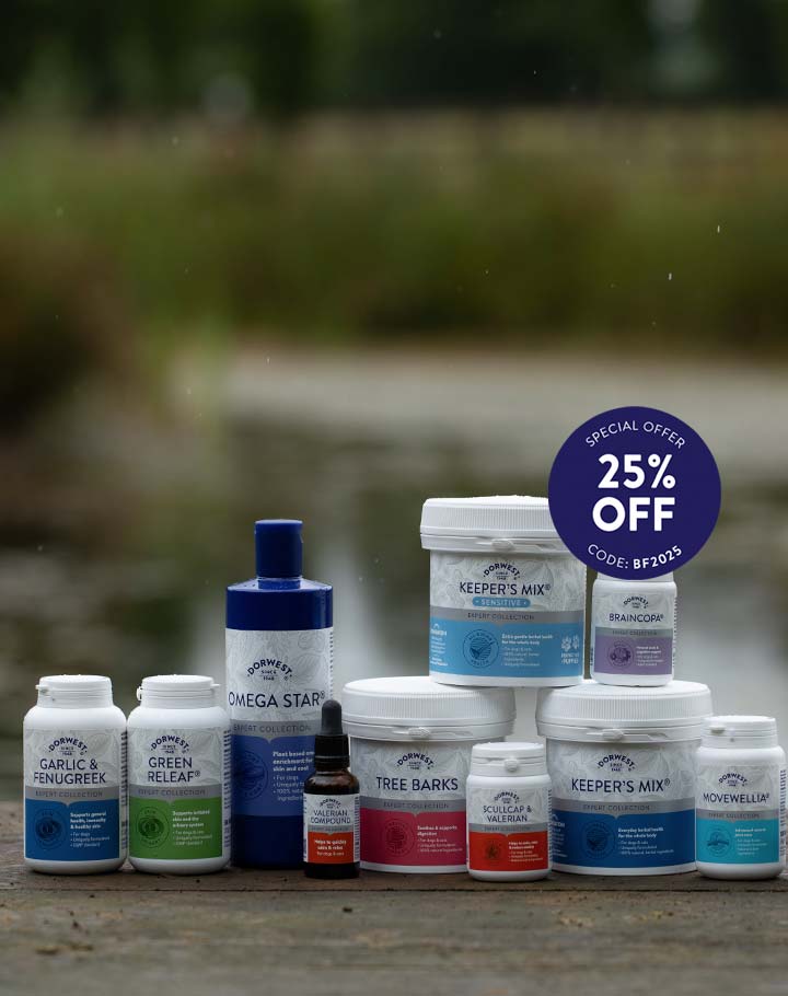 Dorwest Herbs is the UK’s leading authority for herbal remedies and supplements for dogs and cats. With over 75 years experience, our herbal pet remedies are trusted worldwide by owners looking for natural support for their pets. We offer a unique range of specially formulated products suitable for both dogs and cats and believe that ethical and sustainable curated approaches to our pet’s health is the way forward.